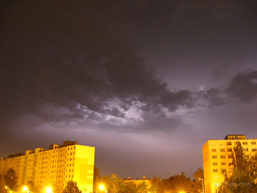 | Leírás: Az éjszakai, hajnali villámok fénye, fõleg a várostól DK-re. | |