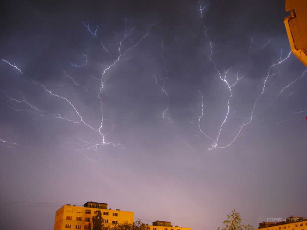 Leírás: Az éjszakai, hajnali szegedi vihar villámai.