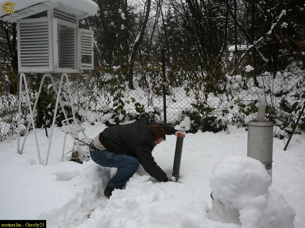 | Leírás: A Hermesi csapadékmérõ állomáson hósûrûségmérést végzek | |
