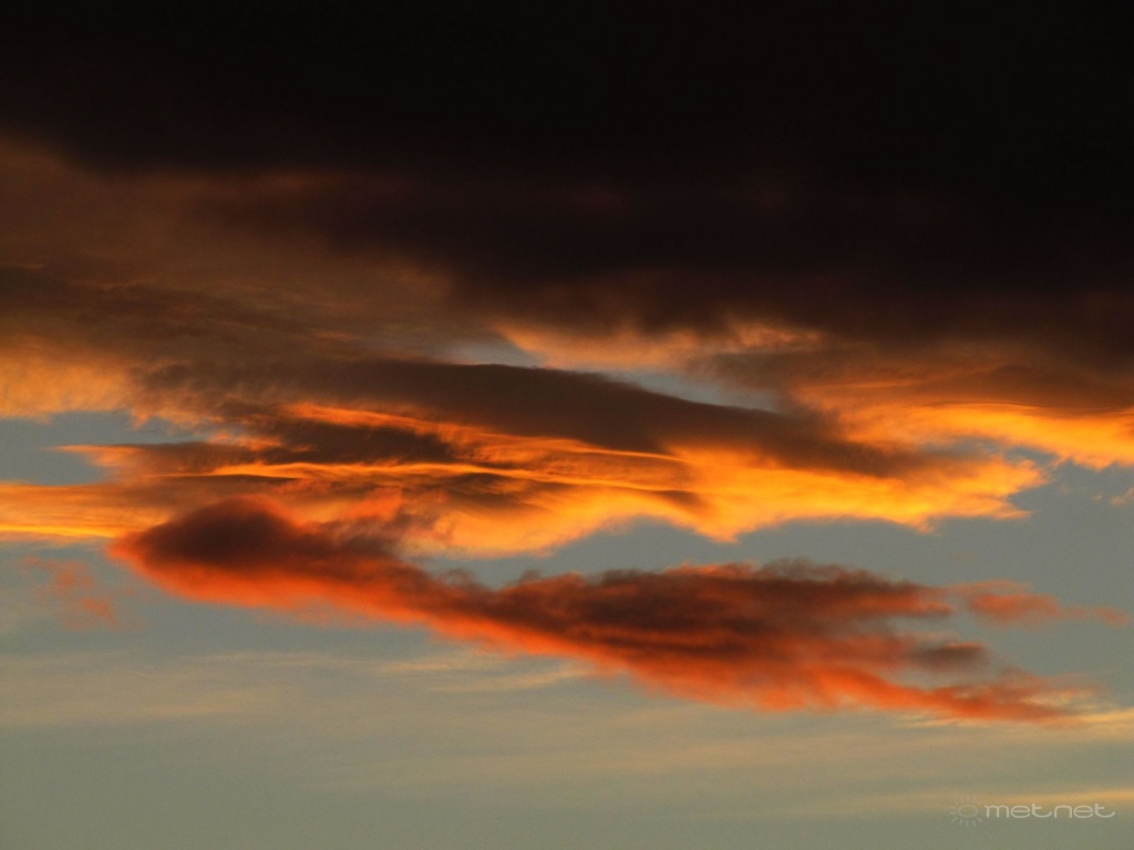 | Leírás: Érdekes formák. A távozó ciklon felhõzete alá világít a lemenõ Nap. | |