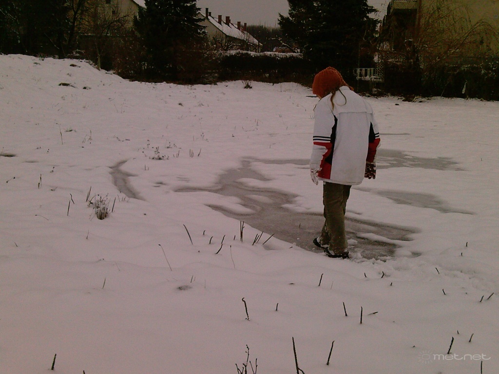 | Leírás: Az újabb hóesés kezdete,pocsolyákon való csuszka és hófúvás nyomok | |