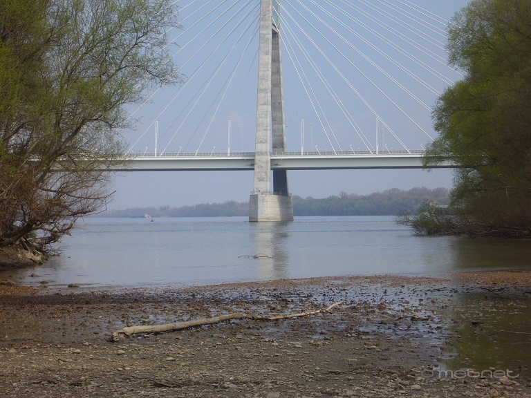| Leírás: Dunai hordalék háttérben a Megyeri híd sziluttje. | |