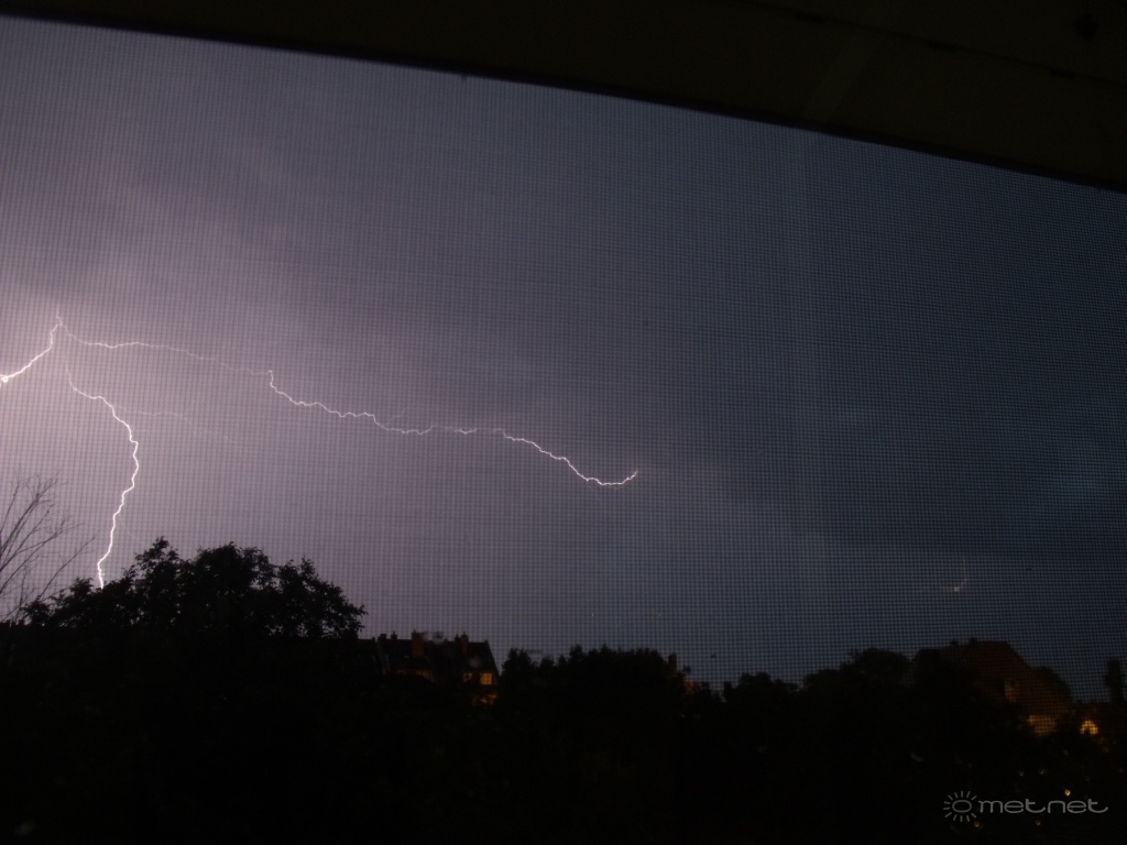 | Leírás: A szobámból nyugat felé látható villámok közül pár. [Igen sajnos a szúnyogháló...] |