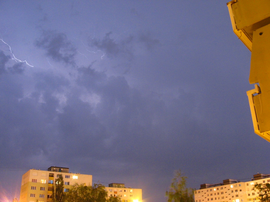 | Leírás: A várostól DK-re, majd a városon áthaladó zivatar villámai. | |