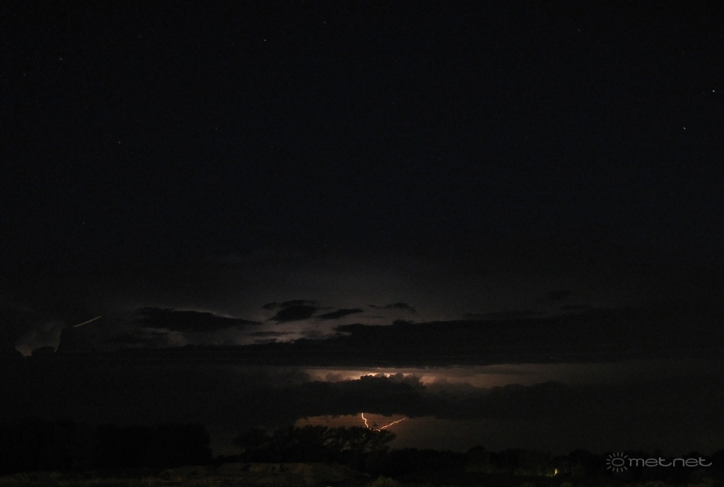 | Leírás: Villámok által megvilágított, Ény-i irányból közeledõ zivatarfelhõ (Gyõr-Ménfõcsanak) | |