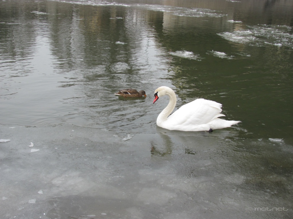 | Leírás: A jeges víz ellenére is vígan úszkálnak a vízparti madarak a Mosoni-Duna vizében. | |