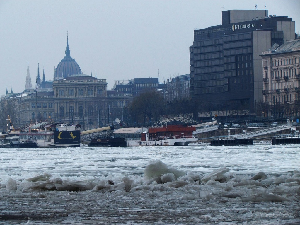 | Leírás: Jégtáblák torlódása a Dunán. | |