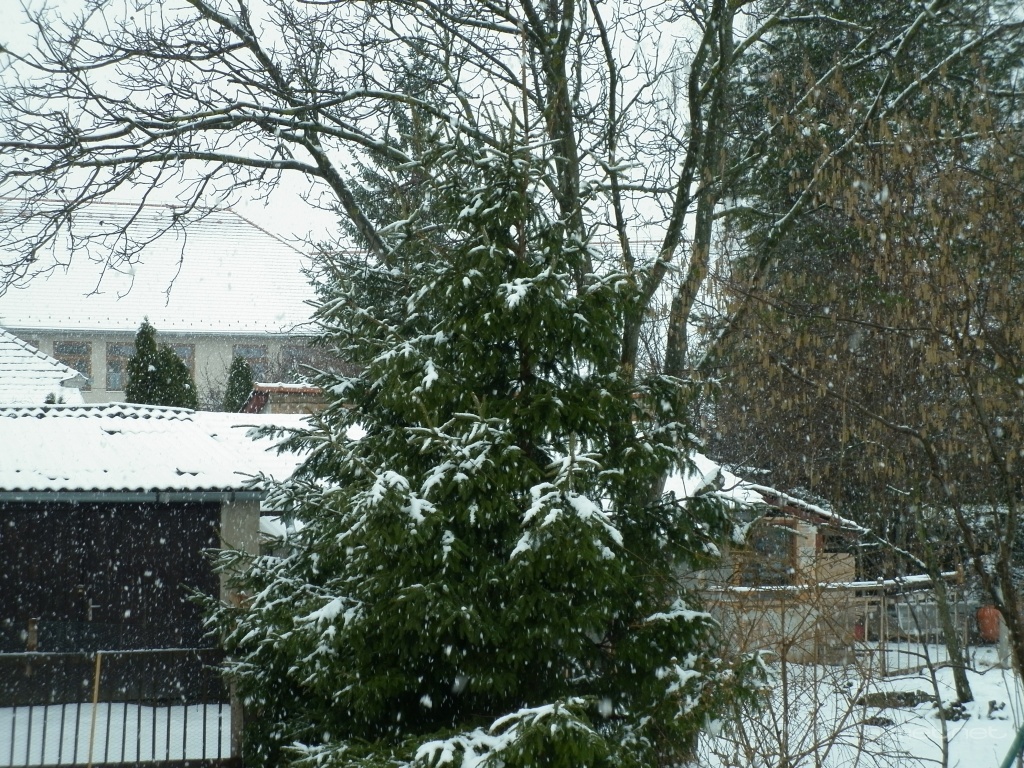 | Leírás: Nagypelyhes havazás. Váratlanul délben is esett még a hó(hajnal óta nincs megállás) és 4-5 cm a hótakaró. | |