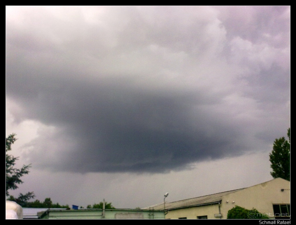 | Leírás: Sebtiben készült mobilos képek egy zivatarról aminek szupercellagyanús képzõdményei vannak. Mind a farokfelhõ, a falfelhõ, és a feláramlási torony felismerhetõ rajta. Lehet, hogy csak a jó szélnyírásnak köszönhetõ, hogy ilyen alakja lett. :-) | |