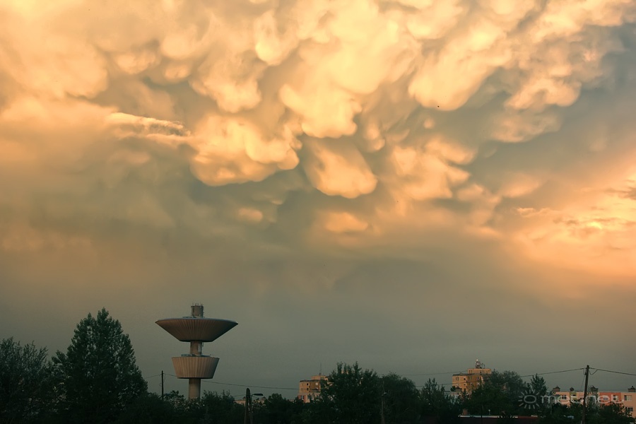 | Leírás: Mammák a bácskai szupercella üllõjén, naplementében. | |