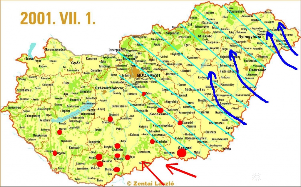 piros nyíl: helyi zivatarok lassú vonulási iránya
