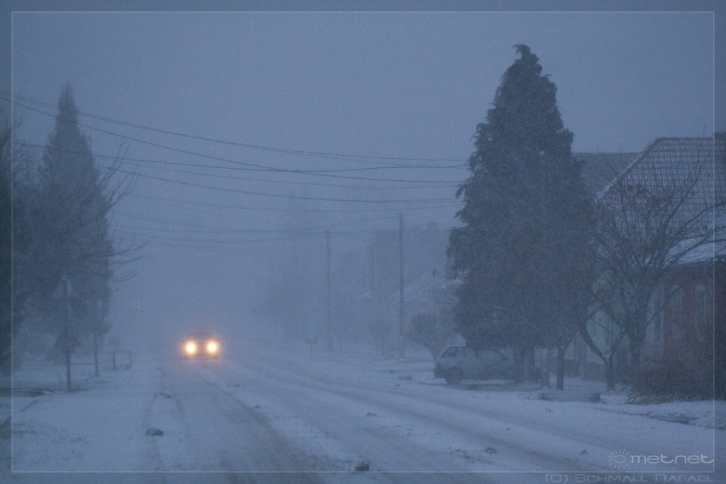 | Leírás: Látótávolság 200-300 méter. Erõs havazás + élénk északkeleti szél. | |