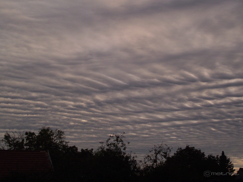 2013-10-19 14:32:13 - Kosakiss Mégpedig kettõs hullámtermészetû felhõzet. A nagy valószinûséggel a kép bal alsó harmada felõl a kép jobb felsõ harmada felé vonuló Altocumulus egyszerre mutat a haladási iránnyal párhuzamos (hosszanti-) és az arra merõleges (kereszt-) hullámokat. Gratulálok a felvételhez, kiváló felhõmorfológiai tanulmány!