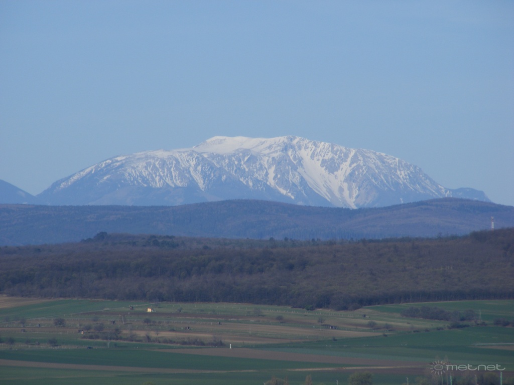| Leírás: A Schneeberg és a Rax a soproni Hubertusz kilátóból. | |