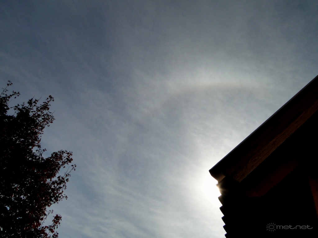 2014-04-21 07:51:01 - szélkerék21 22°-os haló körül megjelent körülírt ív , enyhén vöröses, fehéres, felsõ érintõ íve látható.