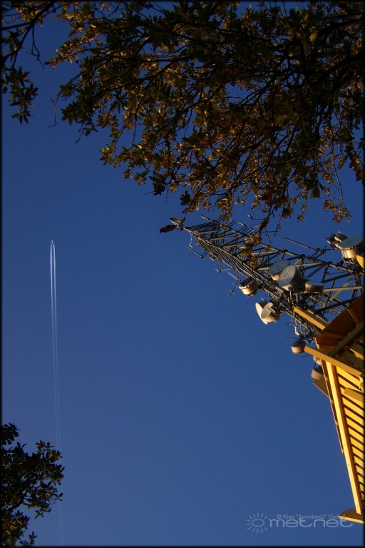 2014-10-29 09:33:28 - Budai Nekem tetszik. Nem a szokványos és ezáltal unalmas perspektíva.Az ég kékjéhez nagyszerûen társul a repülõgép hófehér kondenzcsíkja és a kilátó fa anyagának sárgás színe is :-)