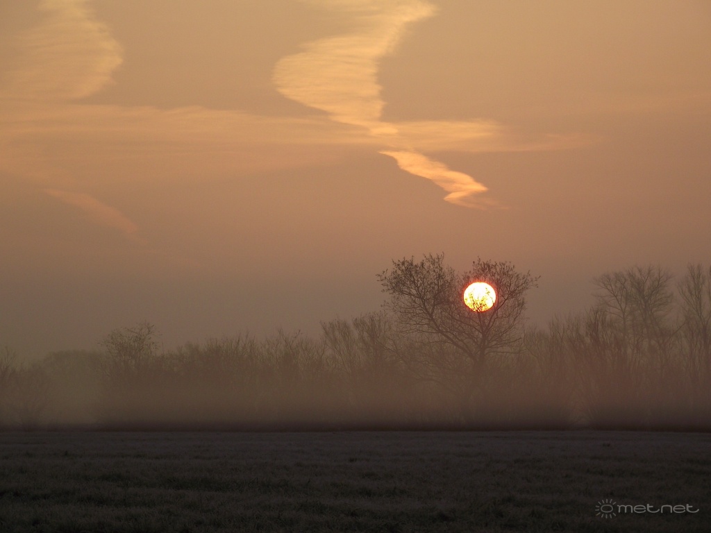 | Leírás: Napkelte sekély köddel, dérrel. | |