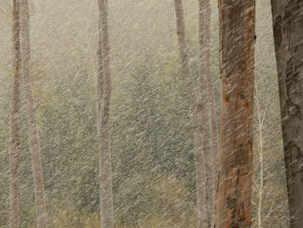 | Leírás: Összeáramlásból intenzív hózápor a Bükk északi felén, a Csondró-völgy völgyfõjének végén. | |