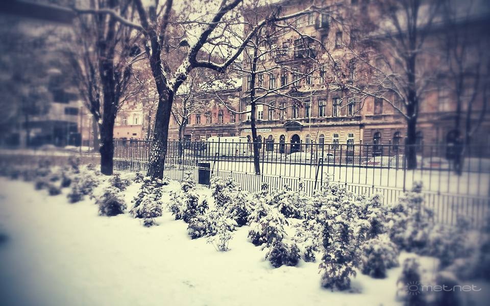 | Leírás: 3,5-4 cm közötti hóréteget hagyott maga után a melegfront. (Bp. 8. kerület, Kálvária tér) | |