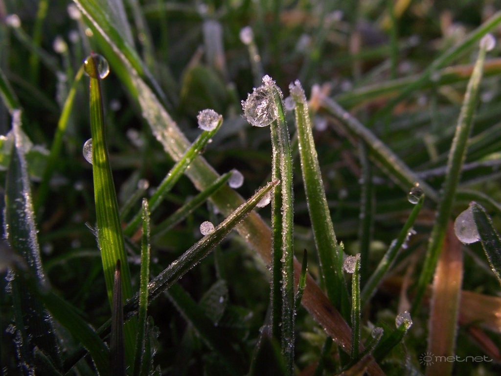 | Leírás: Dér és megfagyott harmatcseppek. | |