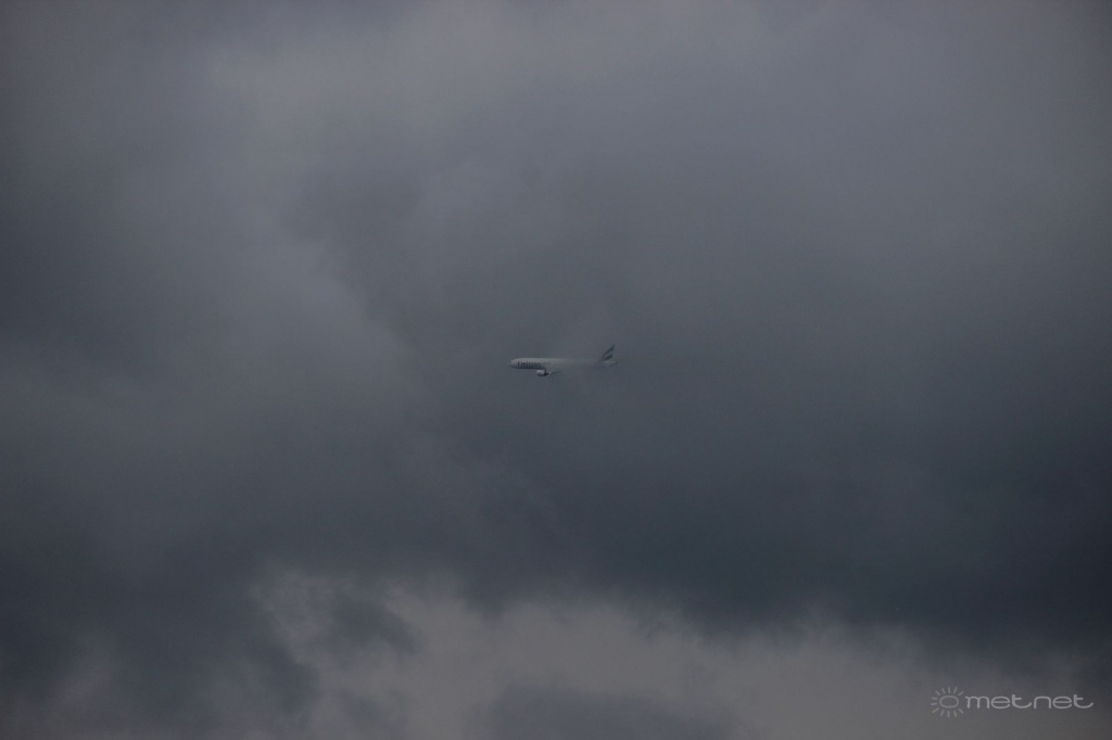 | Leírás: Permfelhõs zápor érkezése Emirates B777-el. | |