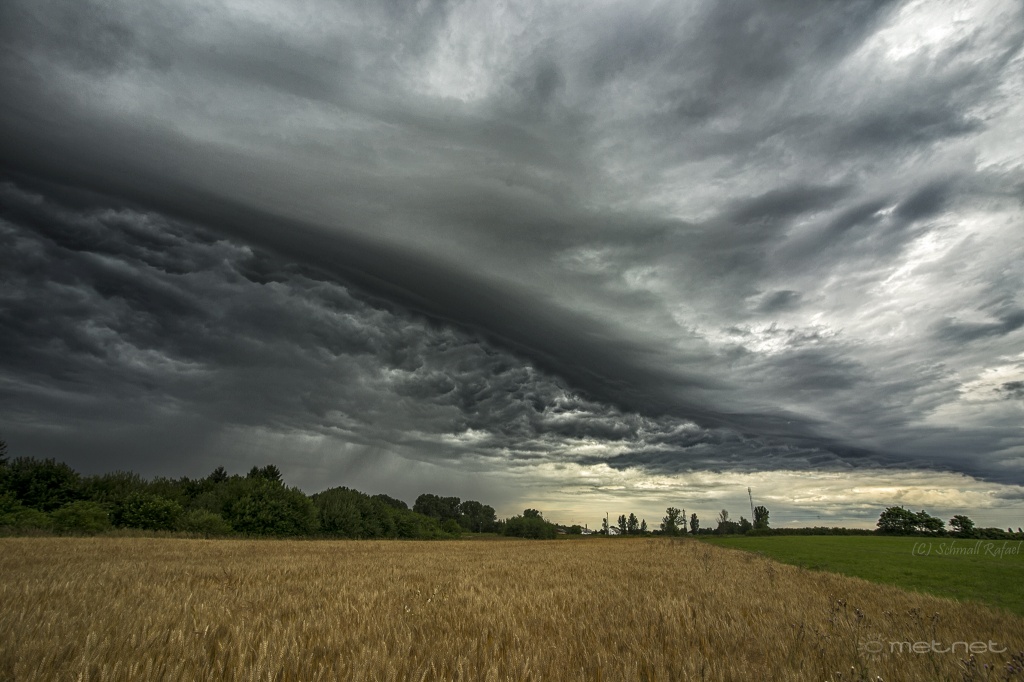 | Leírás: Gyenge zivatar, igen látványos, de ártalmatlan arcus felhõvel | |