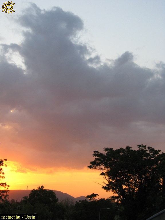 | Leírás: Feloszlóban lévõ gomolytornyok alá világít a lemenõ nap a Hármashatár-hegy irányában | |