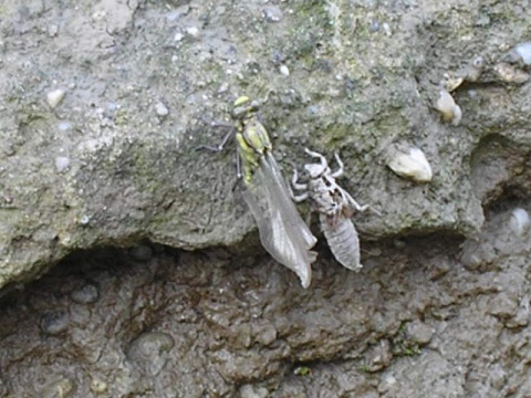 | Leírás: Egy új szitakötõ "születése"vizi élet vége légi élet kezdete. | |