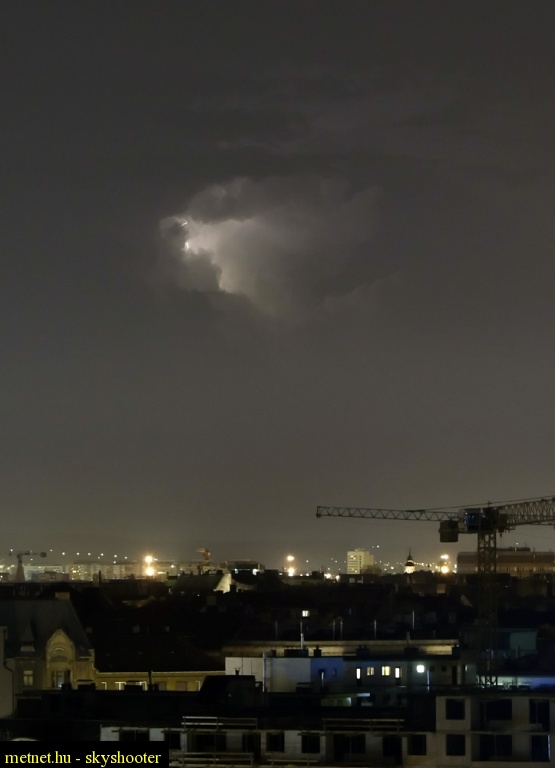 | Leírás: A dunántúli zivatarok villámai Pestrõl nézve | |