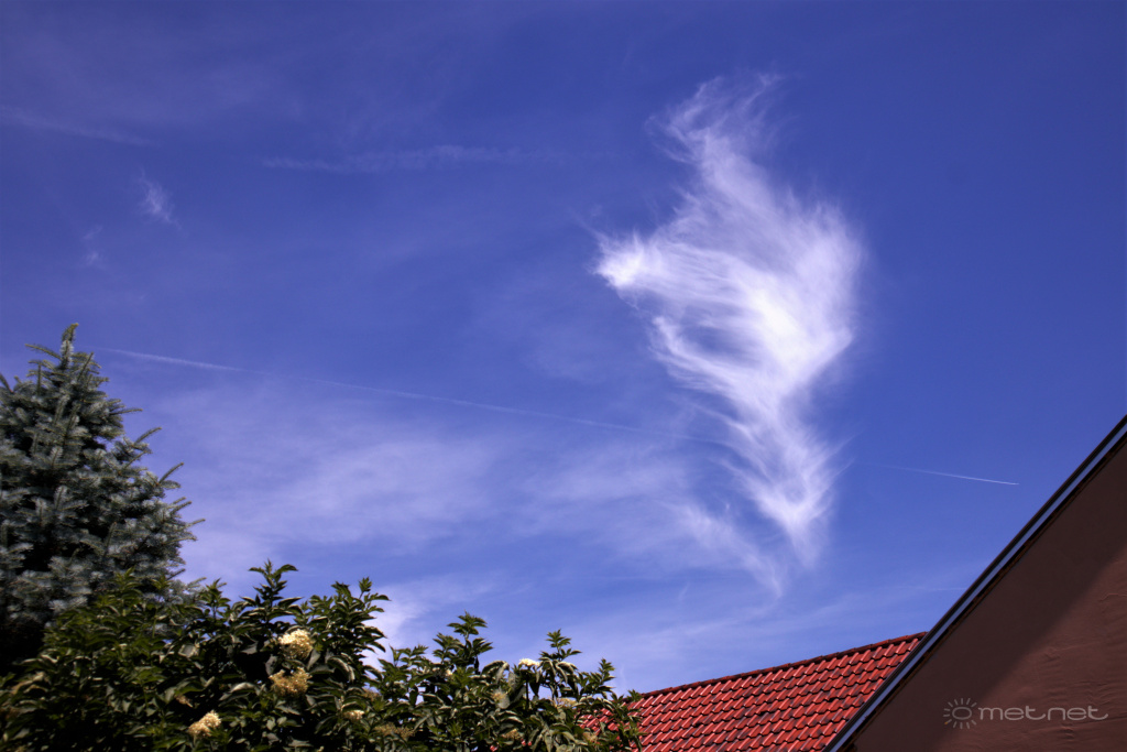 2021-06-24 10:59:30 - Kosakiss Méltán kapta nevét ez a pehelyfelhő a tollpihéről, halgerincről: Cirrus fibratus vertebratus.