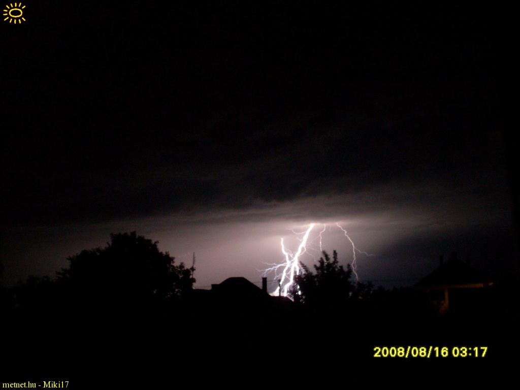 | Leírás: Szép villámok kíséretében dél->észak irányba folyamatosan vonultak az intenzív zivatarok ezen az éjszakán. | |