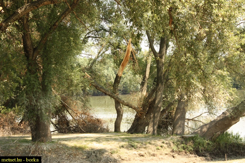 Leírás: A július 24-iki éjszakai szélvihar által derékba tört fák a Duna-parton, és annak közelében.