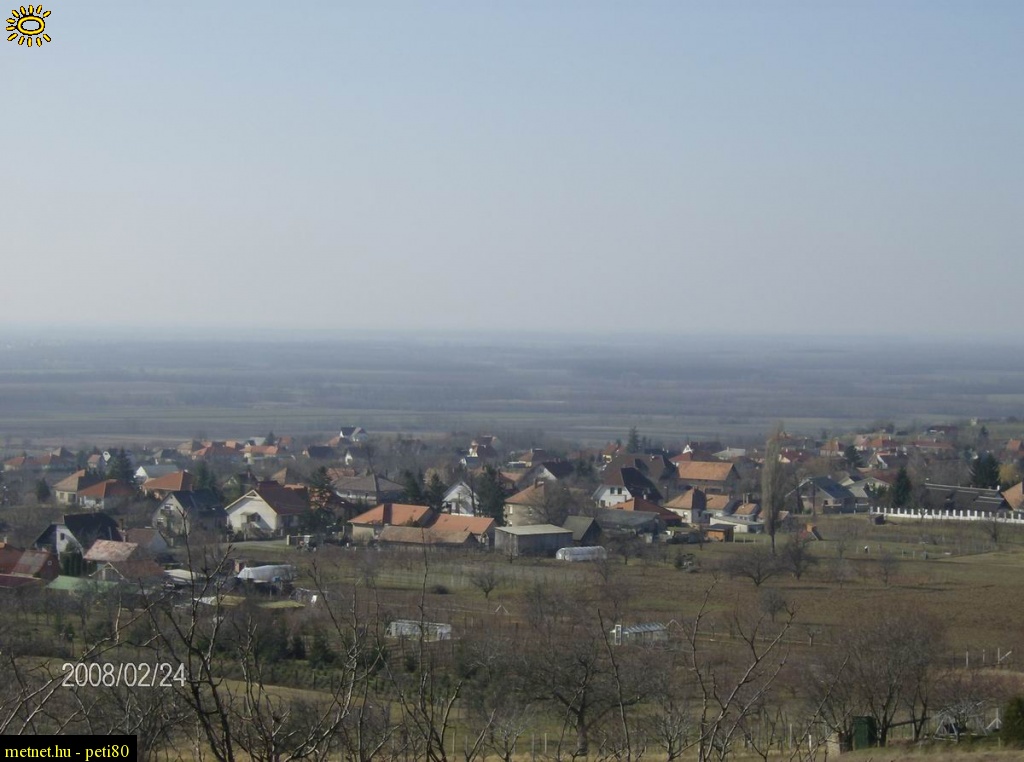 | Leírás: Gyõrújbaráthegy látképe (Petõfi Sándor utca) és a háttérben a Marcal-medence. | |