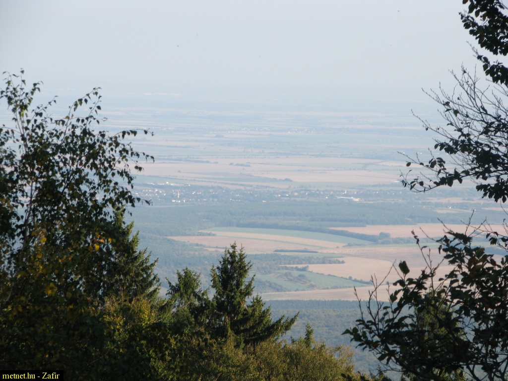 | Leírás: Kilátás az Írott-kõ csúcsáról (883 méter) Magyarország felé (A csúcs az osztrák-magyar határon emelkedik) | |
