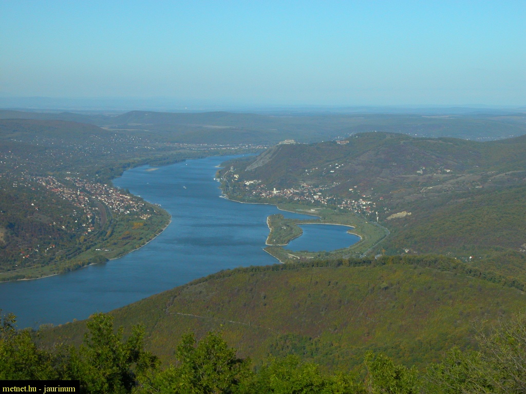 Leírás: Kilátás a Prédikálószékrõl (639m). Nagymaros és Visegrád a Fellegvárral.