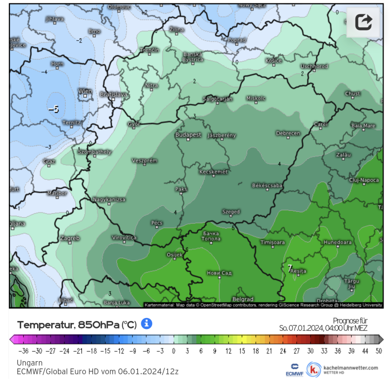 Hétfőn este melegfront érkezik, ami főként északra és keletre hoz csapadékot, zömében havat, de előfordul majd vegyes halmazállapotú csapadék is.