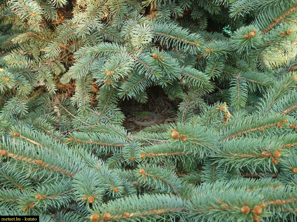 | Leírás: Kertünk egyik lakója, a fenyõnkben megbújva. | |