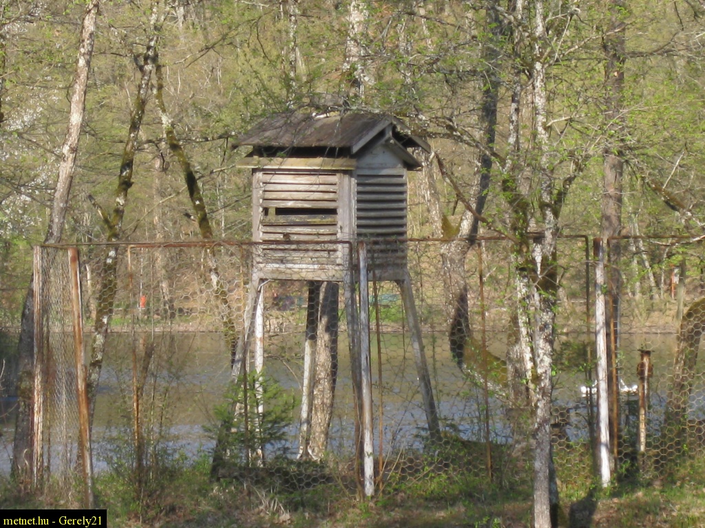 Leírás: Elhanyagolt hõmérõház a Medvetó partján.