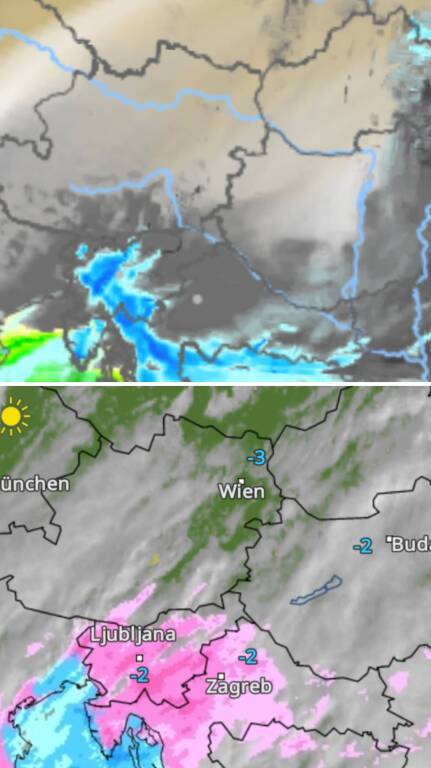 Hétfőn este melegfront érkezik, ami főként északra és keletre hoz csapadékot, zömében havat, de előfordul majd vegyes halmazállapotú csapadék is.