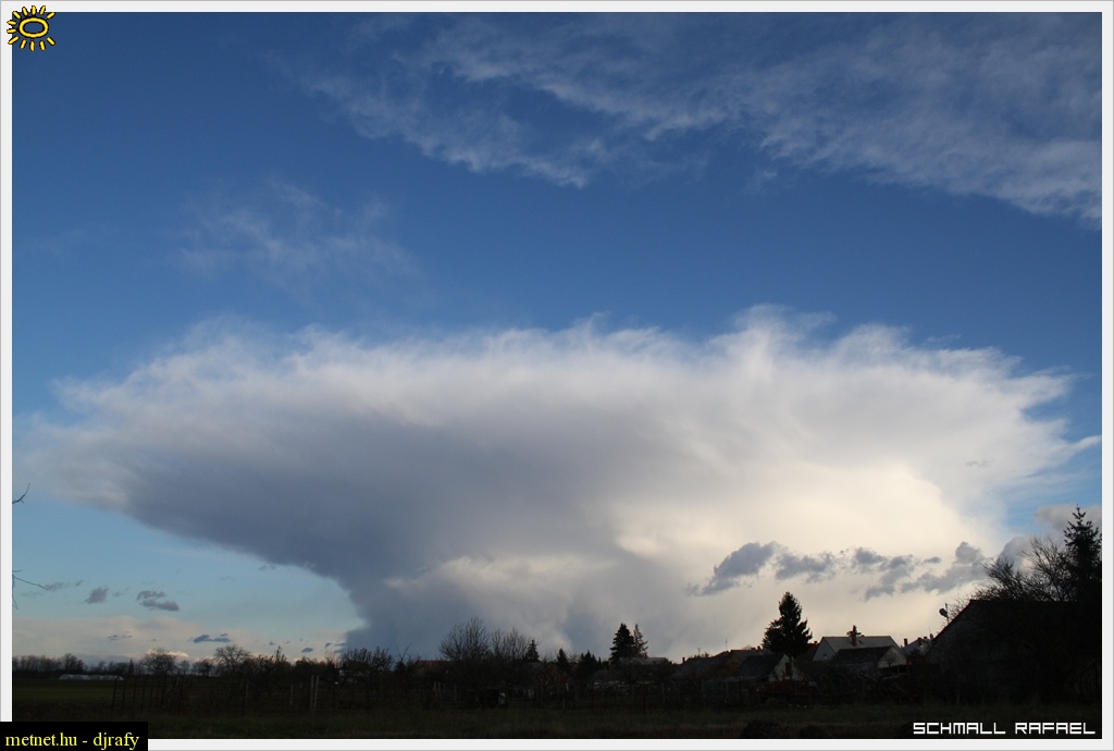 | Leírás: Távolodó hózáportömb. A balatonnál kiadós csapadékot hozott és egészen a határig eljutott. |