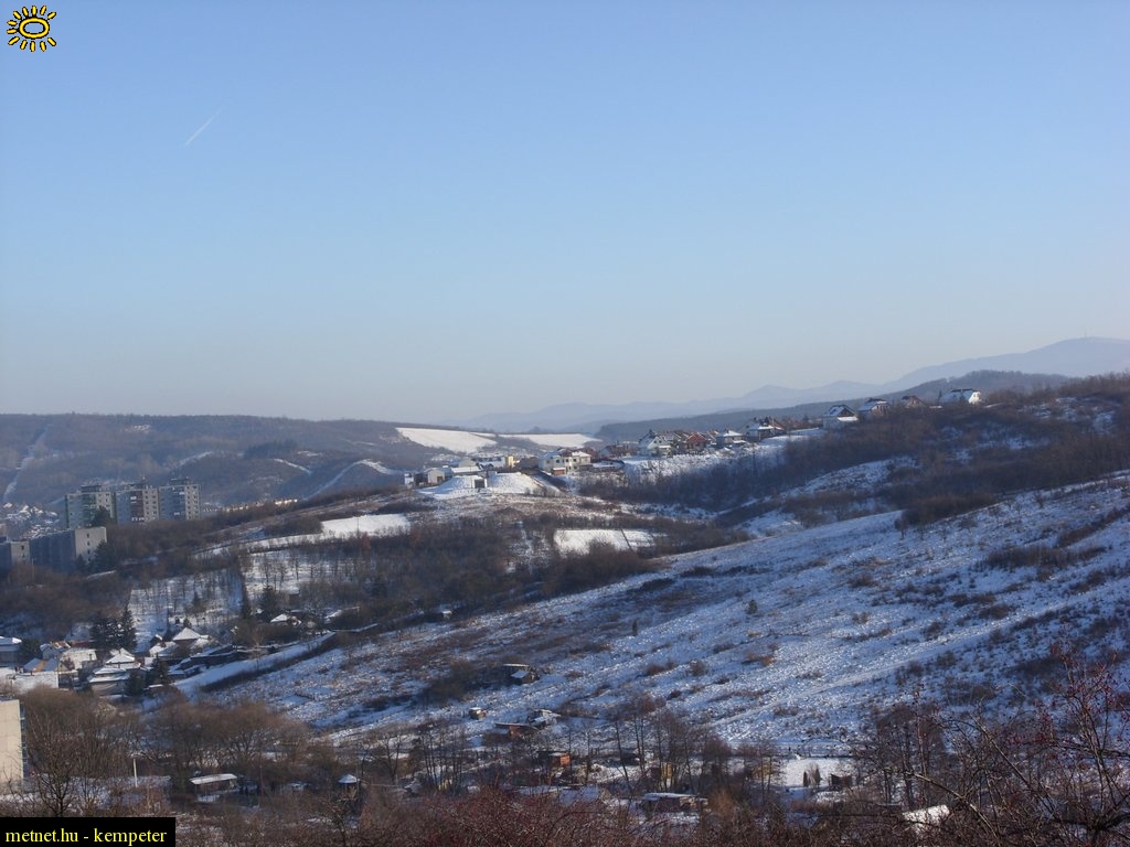 | Leírás: Lakóhelyem a dombon,alul a lakótelep és családi házak,jobb szélen a háttérben Kékestetõ. | |