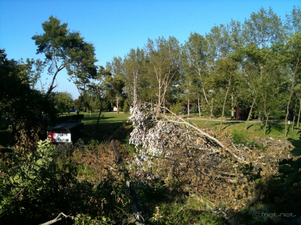 | Leírás: Feltételezett sarudi tornádó után hat nappal dokumentált viharkárok. | |