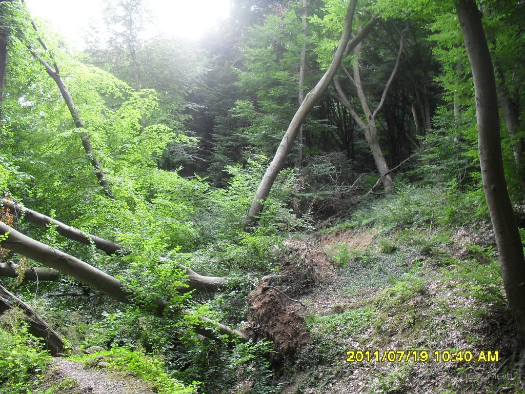 Leírás: Ez nem tudom mi lehetett, de a fák különbözõ irányba vannak kidõlve gyökerestül, de egyébként egy tornádóra tippelek.