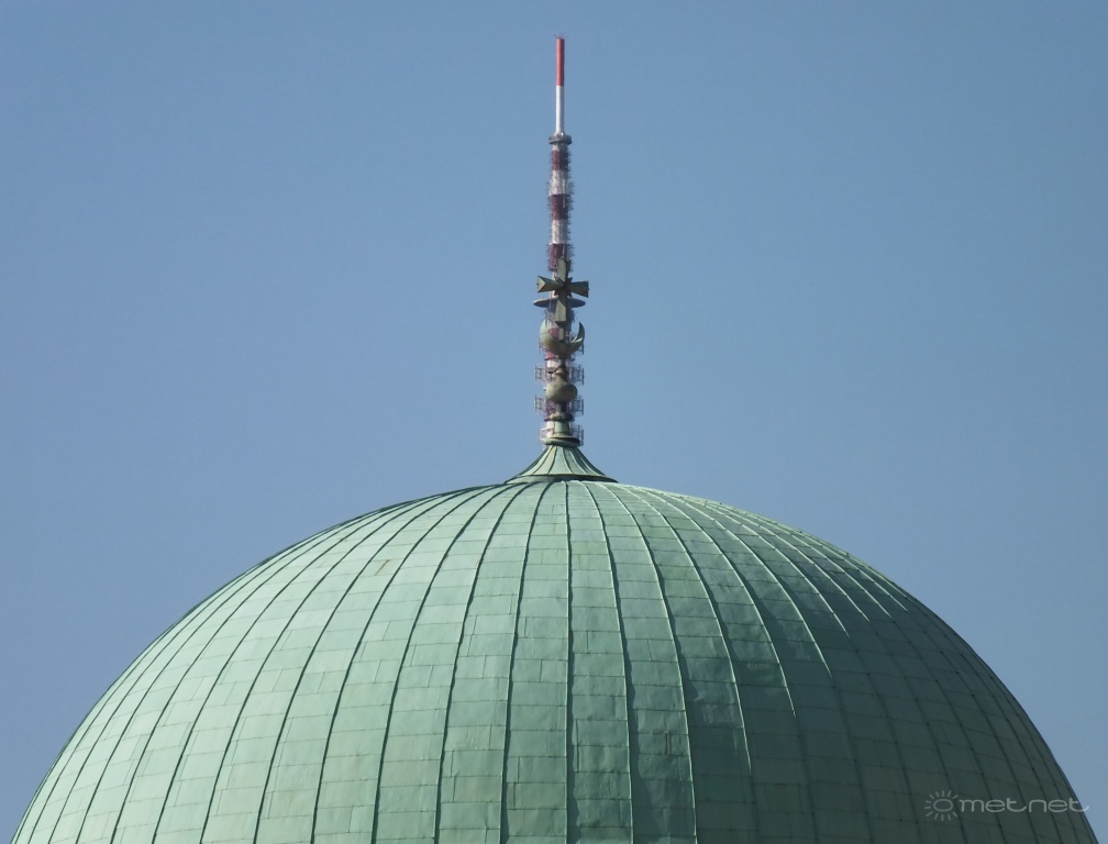 | Leírás: Gázi Kászim pasa dzsámijának kupolája Pécsen, háttérben a Misina-tetõn lévõ TV-torony felsõ része. | |