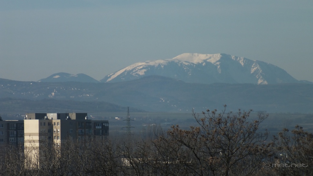| Leírás: A Schneeberg (j) és a Bucklige Welt (b) masszívuma a soproni Koronázó-dombról. Bal oldalon a középtávolban a fraknói vár (Forchtenstein). |