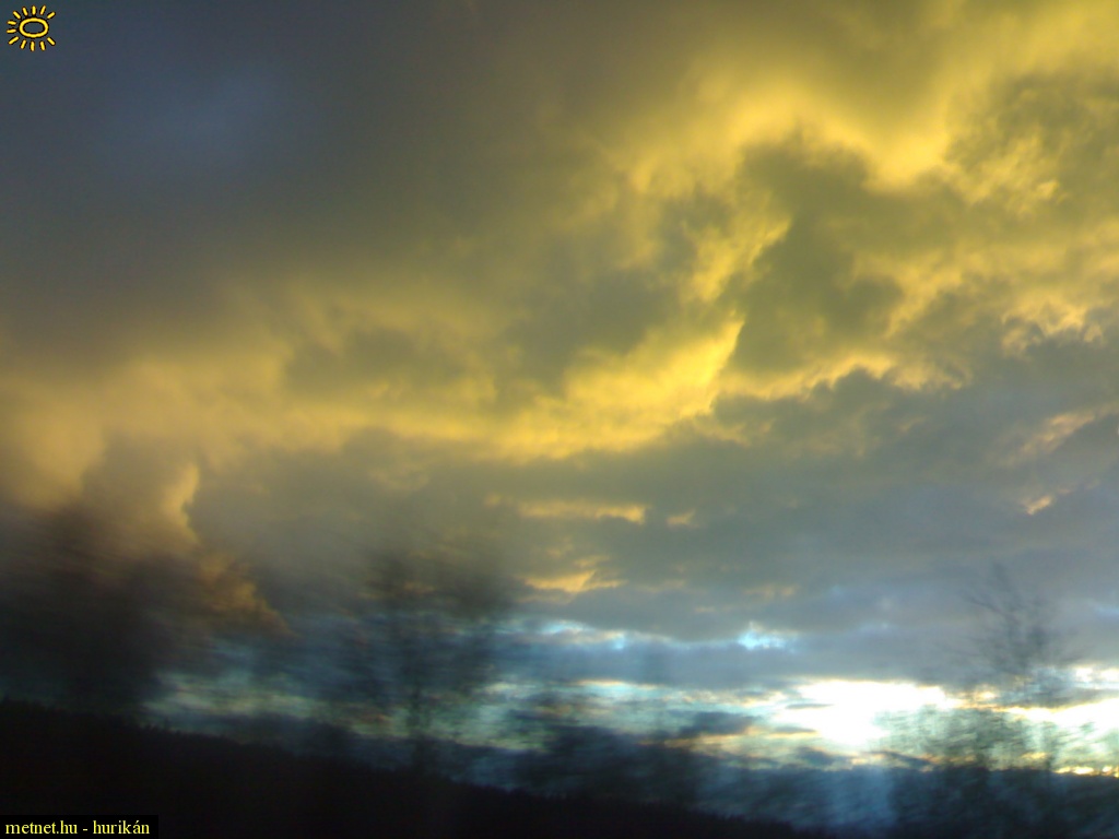 | Leírás: Egy német autópályán kamionozás közben tavaly márciusban. A lemenõ nap megvilágította a gyenge zápor felhõzetét. | |