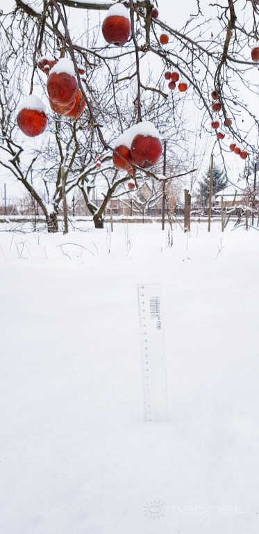 | Leírás: Hóval fedett almák és a mért hómennyiség. (12cm) | |