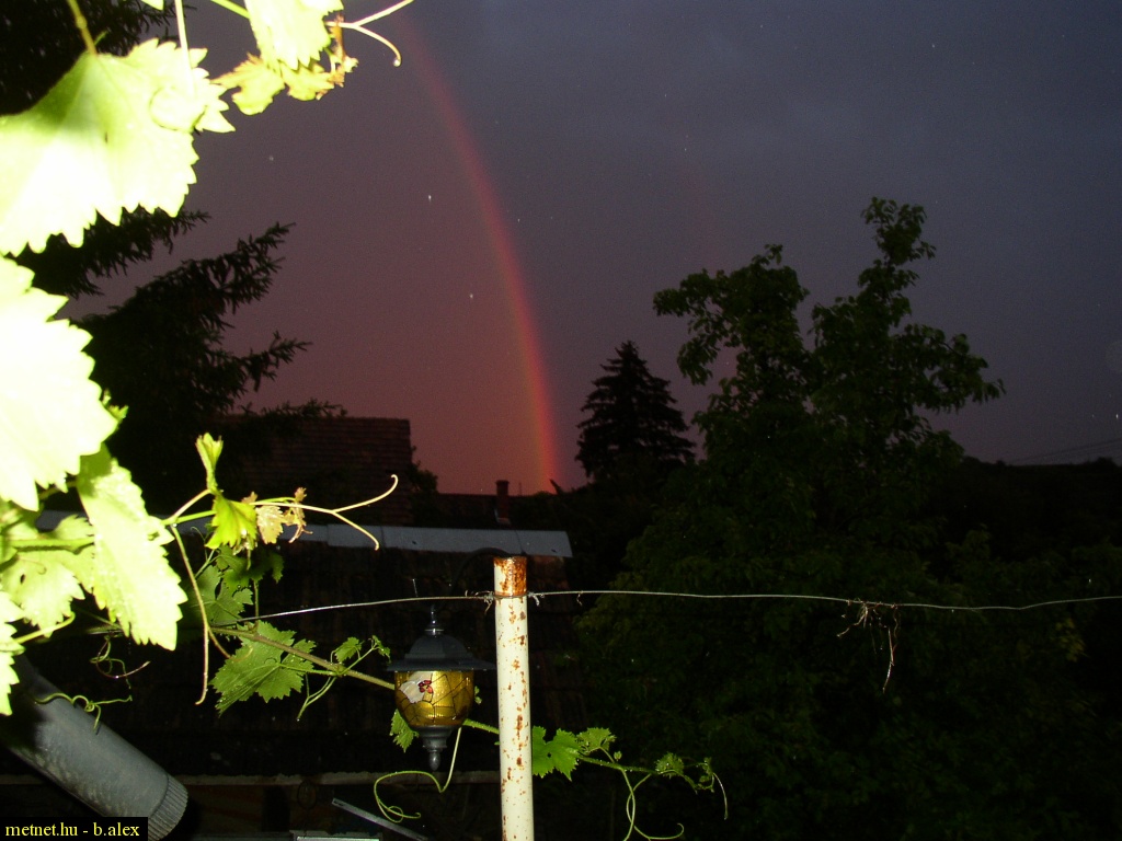 | Leírás: A nap már a közeli domb mögé lebukott, de az égen még világított, így lett egy piros szivárványunk. | |
