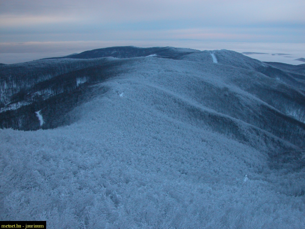 Leírás: Csonttá fagyott börzsönyi gerincek a Csóványos (938m) kilátójából.