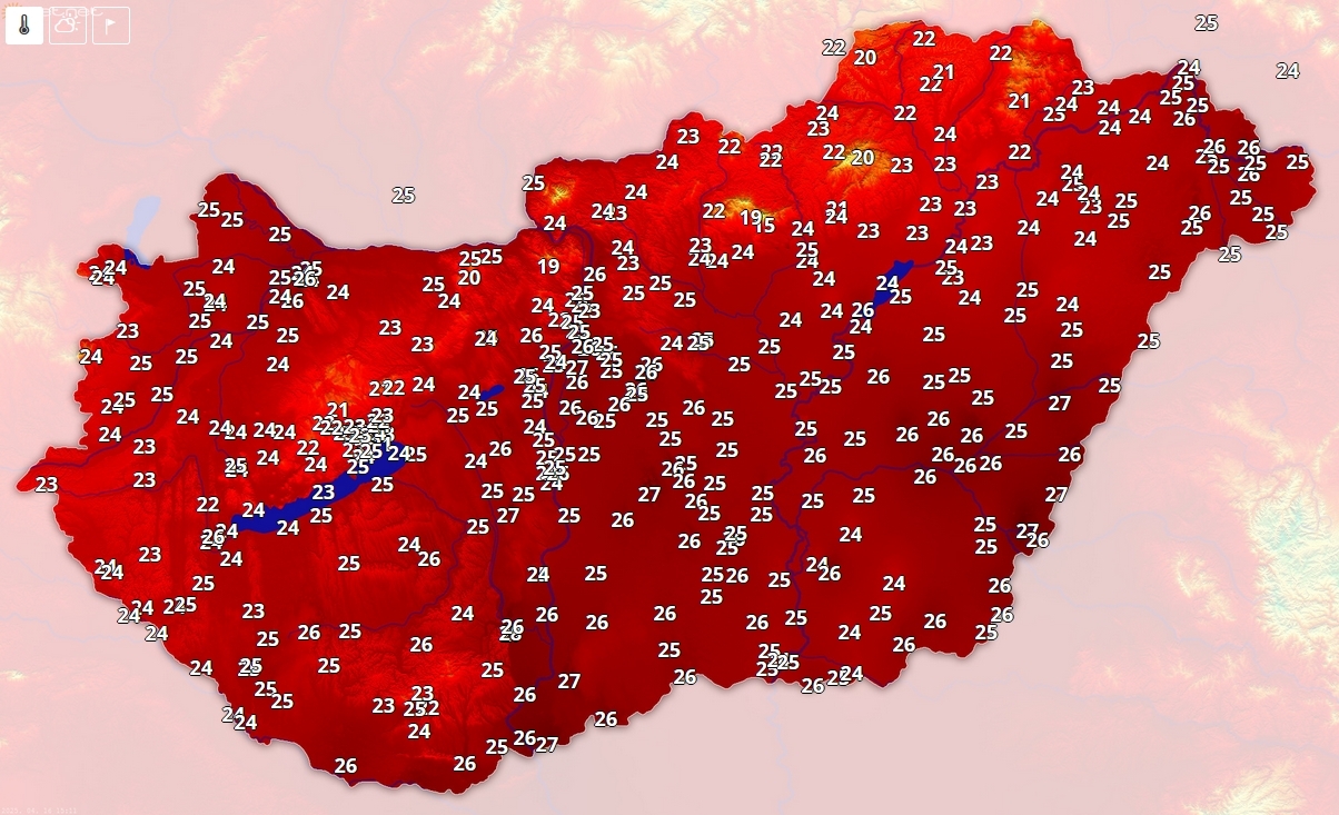 Az egy hete kiadott előrejelzésünknek megfelelően megérkezett a nyárias meleg. Jellemzően 23 és 26 fok között a hőmérséklet, de néhol már 27 fokot is mérnek!